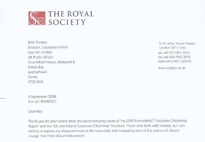Senators then sent Exxon a letter demanding that they cease paying for the “effective climate change denial myth” and Britain’s Royal Society called on Exxon to stop financing American groups that “misinformed the public about climate change.”