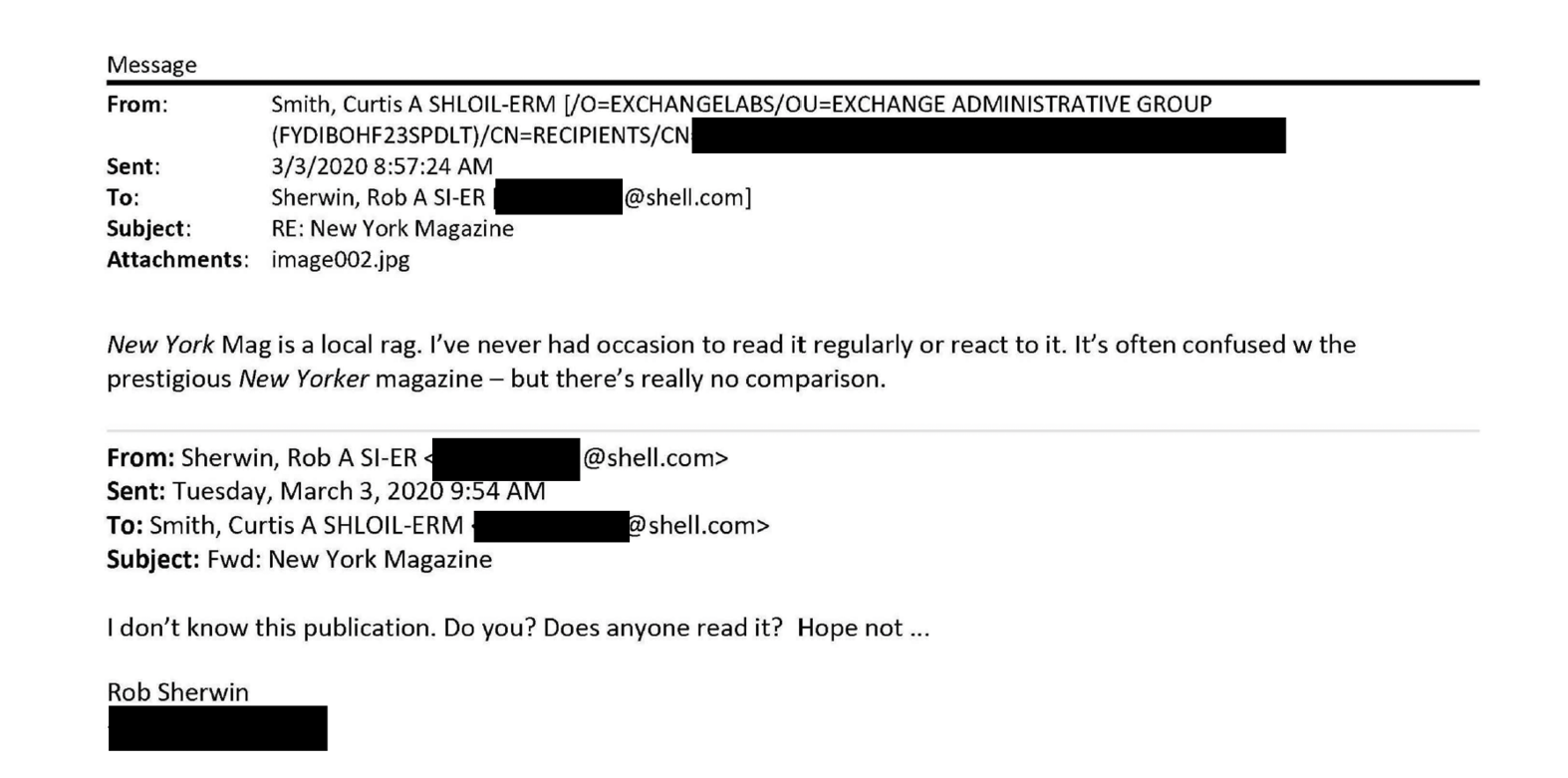 As a reporter, it’s satisfying to see how the companies we cover talk about journalists in private. The documents range from company materials discussing marketing strategy to moments of internal strife as execs clash with colleagues and reporters. I have to confess to loving some of the mess, from higher-ups at Shell expressing frustrations about the company’s president to Exxon CEO Darren Woods taking issue with the use of spacing in a document.