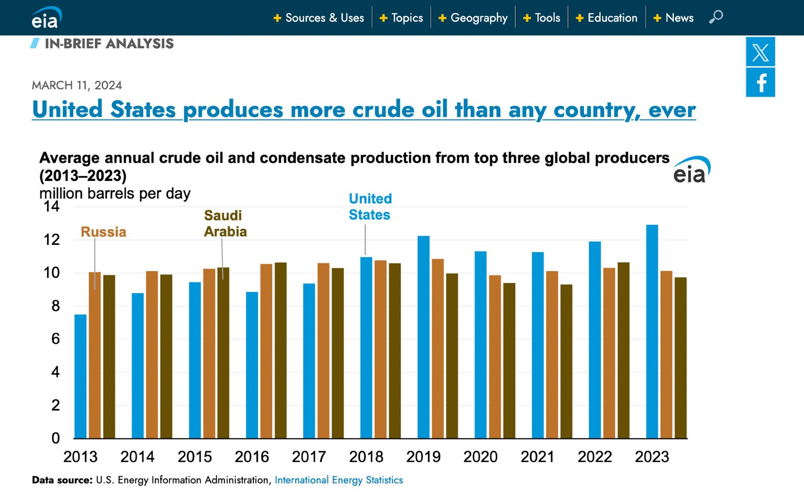 Jan 20, 2025 “Declaring a National Energy Emergency” - According to this order, “the energy and critical minerals (“energy”) identification, leasing, development, production, transportation, refining, and generation capacity of the United States are all far too inadequate to meet our Nation’s needs.” Further, it states that the previous administration’s policies resulted in “inadequate energy supply and infrastructure” which “causes and makes worse the high energy prices that devastate Americans, particularly those living on low- and fixed-incomes. This active threat to the American people from high energy prices is exacerbated by our Nation’s diminished capacity to insulate itself from hostile foreign actors.” This is unequivocally false. The U.S. is more energy independent than it has ever been. The U.S. is the world's top producer of oil and gas, and the top exporter of gas, and U.S. oil and gas producers are making record profits. Last year the U.S. surpassed all oil production records ever. Increasing exports will increase short term profits for some companies, and increase costs for everyone else.