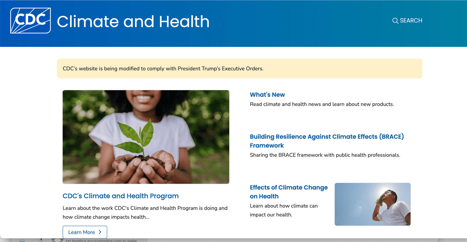 CDC - New notice posted on climate & health page saying it's being modified to comply with Trump’s executive orders: (here's what it looked like before)
